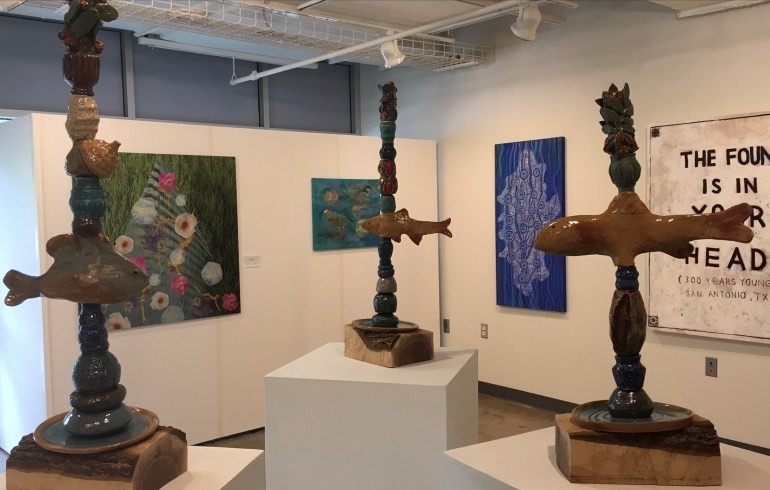 Art of the Sacred Springs, Kelso Gallery, University of the Incarnate Word, Three Totems, April 2018.